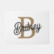 Modern Elegant Monogram Name Black Gold Script Doormat