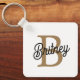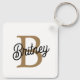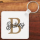 Modern Elegant Monogram Name Black Gold Script Keychain
