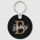 Modern Elegant Monogram Name Black Gold Script Keychain