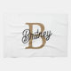 Modern Elegant Monogram Name Black Gold Script Kitchen Towel