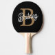 Modern Elegant Monogram Name Black Gold Script Ping Pong Paddle