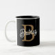 Modern Elegant Monogram Name Black Gold Script Two-Tone Coffee Mug