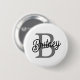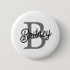 Modern Elegant Monogram Name Black Gray Script Button