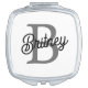 Modern Elegant Monogram Name Black Gray Script Compact Mirror