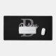 Modern Elegant Monogram Name Black Gray Script Desk Mat