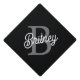 Modern Elegant Monogram Name Black Gray Script Graduation Cap Topper