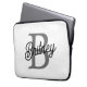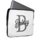 Modern Elegant Monogram Name Black Gray Script Laptop Sleeve