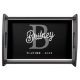 Modern Elegant Monogram Name Black Gray Script Serving Tray