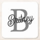 Modern Elegant Monogram Name Black Gray Script Square Paper Coaster