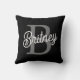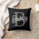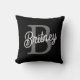 Modern Elegant Monogram Name Black Gray Script Throw Pillow