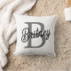 Modern Elegant Monogram Name Black Gray Script Throw Pillow