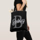 Modern Elegant Monogram Name Black Gray Script Tote Bag