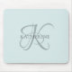 Modern Elegant Monogram Script Aqua Blue Mouse Pad