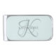 Modern Elegant Monogram Script Aqua Blue Silver Finish Money Clip