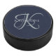 Modern Elegant Monogram Script Navy Blue Hockey Puck