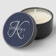 Modern Elegant Monogram Script Navy Blue Mini Candle Favors