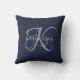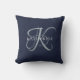 Modern Elegant Monogram Script Navy Blue Throw Pillow