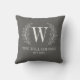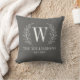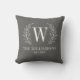 A modern monogram grey throw pillow with laurel leaves. Adds an elegant touch to your home decor. Personalize it with your Initial, name and wedding date. Comes in a variety of colors. Designed for you by blackberry Boulevard.