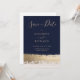 Plain white envelopes are included with paper invitations and will come to fit the invitation size you select. If you don’t need the envelopes, you may choose to not receive them by selecting the dropdown below "Envelopes" and choosing "None." If you’d like to have a design on your envelopes, you can browse all of these available envelopes to find the design that complements your Modern Elegant Navy Gold Foil Invitation.