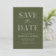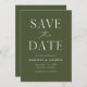 Announce your upcoming nuptials in style with our elegant, modern QR code save the date card. The non-photo save the date features "Save the Date" in white serif and script fonts with an olive green background. Personalize the front of the save the date card by adding your names, wedding date, wedding location, and other wedding details. The minimal save the date card reverses to feature your custom QR code with wedding website and custom text. Perfect save the date for both modern formal and casual weddings!