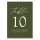 Trendy, minimalist wedding table number cards featuring white modern lettering with "Table" in a modern calligraphy script. The design features an olive green background or color of your choice. The design repeats on the back. To order the table cards: add your name, wedding date, and table number. Add each number to your cart individually and check out when you're finished.