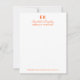 Stylish professional note card stationery design that is perfect for a small business owner or employee features the first and last name initials, the name in modern calligraphy script with classic and elegant text that can be personalized with a job title or business name, as well as company or contact information. Sleek horizontal stripes (removable) dress up the back of the card. Orange and white colors can be modified.