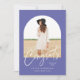 Modern elegant arch 1 photo typography purple graduation announcement card.