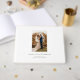 "Celebrate your special day with this elegant and timeless wedding guest book. Featuring a serif typography inspired by Roman engraving, with your wedding photo. Perfect as a keepsake for your wedding ceremony or reception, it is customized with the couple's names, wedding date, and location. Consider adding a pre-wedding posed photo in wedding clothes, an engagement photo, or candid photo of the couple to make it truly unique. To customize font colors or styles, simply click 'Edit Further' after personalizing, select your text, and explore the color palette and font options to suit your vision."