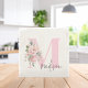 Create your own personalized coaster featuring a custom letter initial monogram with elegant watercolor floral bouquet and modern typography design.