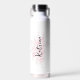 Modern Elegant Pink Floral Name Scripted Water Bottle