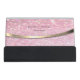 Modern Elegant Pink Glitter Bokeh Gold Stripe Desk Business Card Holder