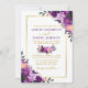 Modern Elegant Purple Floral Gold Wedding Invitation