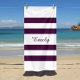 Modern Elegant Purple Stripes Pattern Name Beach Towel