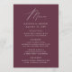Simple and elegant wedding menu featuring "Menu" displayed in a modern white script with a purple background or color of your choice. Personalize the purple wedding menu by adding your names, wedding date, and menu information. Designed to coordinate with our Modern Elegance wedding collection.