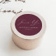 Elegant wedding stickers displaying "Thank You" in a beautiful white calligraphy script with a wine-purple background or color of your choice. Personalize the modern thank you stickers with your names and wedding date. The purple wedding thank you stickers are perfect to use for sealing thank you card envelopes, wedding favor bags, etc.