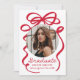 Celebrate your graduate’s milestone with this elegant graduation announcement, featuring a bold red bow and ribbon design on a white background. The graduate’s circular photo is beautifully framed by the bow, while "Graduate" stands out in a sophisticated handwritten red script. Customize with the graduate’s name, school, and graduation year for a personal touch. The back includes an additional photo and space for a custom message, making this design perfect for high school and college graduates. Share this special achievement in style with a timeless and striking keepsake!