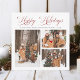 Modern Elegant Red Script Happy Holidays 3 Photo Holiday Card