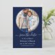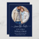 Modern Elegant Round Photo Frame Save The Date Couple Photo Wedding Engagement Announcement Card - Blue