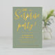 Introducing a new modern, elegant adult surprise birthday party invitation featuring sage green background with gold foiled elegant handwritten typography text that says "shh! it's a surprise party". Customize this template card by adding your own party information.