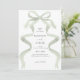 Modern Elegant Sage Green Bow Monogram Wedding Invitation