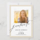 This elegant graduation invitation features two square photo frames, one of the front and a second on the back. The design is accented with modern handwritten style text. Personalize the backside with your party invitation details.