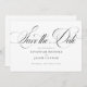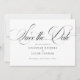 Modern Elegant Script Black and White Save the Date features a large, bold script and elegant styling.