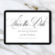 Modern Elegant Script Black and White Save the Date features a large, bold script and elegant styling.
