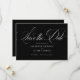 Modern Elegant Script Black and White Save the Date features a large, bold script and elegant styling.