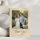 This folded thank you note card features a favorite wedding photo paired with modern script lettering and the couple’s names for a simple, personal way to thank guests. The clean layout highlights your photo while creating a timeless keepsake from your wedding celebration. It’s perfect for thanking friends and family for their gifts, support, and for sharing your special day. A beautiful choice for newlyweds sending heartfelt notes after the wedding.