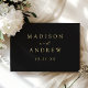 Elegant wedding guestbook featuring your names and wedding date in gold foil lettering with a black background. Personalize the spine of the simple wedding guest book with your married name and wedding date. The back of the black and gold foil wedding guest book displays your horizontal photo.