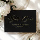 Elegant wedding guestbook featuring "Guest Book" displayed in a modern foil calligraphy script with a black background. Personalize the front of the black and gold foil wedding guest book with your names and wedding date. The back of the guest book displays your monogram initials. Add your married name and wedding date to the spine of the guest book.