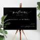 Simple minimalist chic calligraphy script classic black and white horizontal printable wedding welcome sign poster. Digital download available.