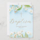 Modern Elegant Script Blue Flowery Cross Baptism Invitation