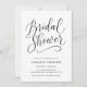 nvite loved ones to celebrate the bride-to-be with this elegant script bridal shower invitation. The modern black calligraphy font paired with a clean white background creates a timeless and sophisticated look. Personalize with your details for a chic invitation that fits any bridal shower theme. Visit the full collection for more matching items to complete your event.